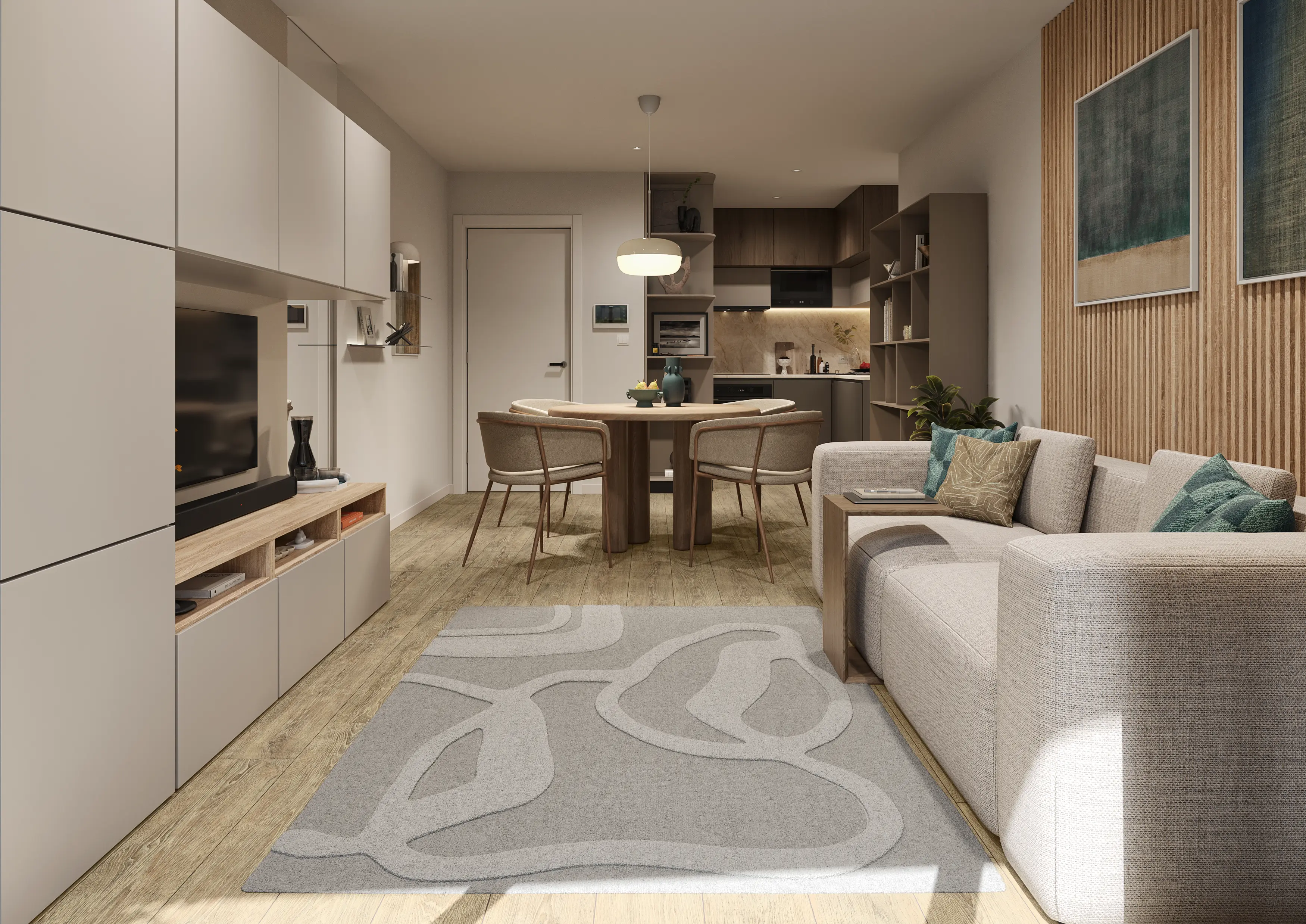 The T2 apartments at Evergreen Pure offer a perfect balance between interior space and outdoor living. Featuring spacious interiors and terraces that can exceed 90 m², these units provide a strong connection to nature and an open-air lifestyle.